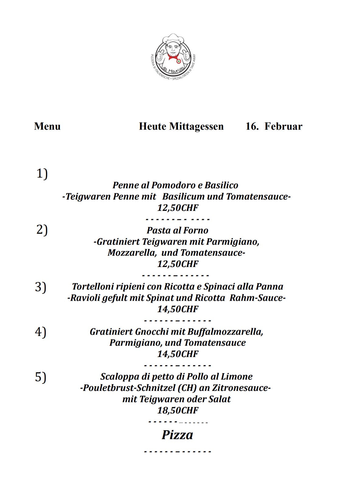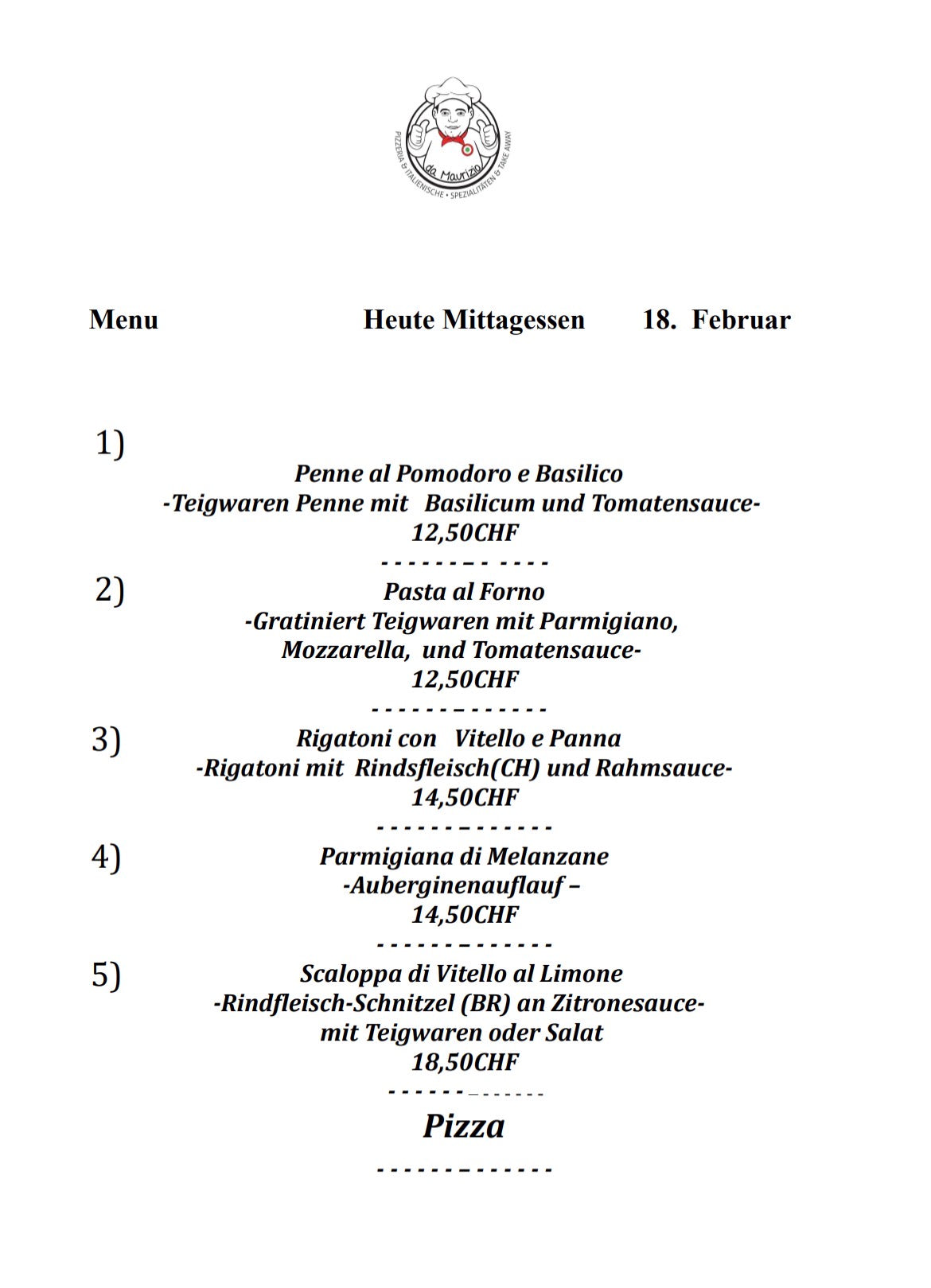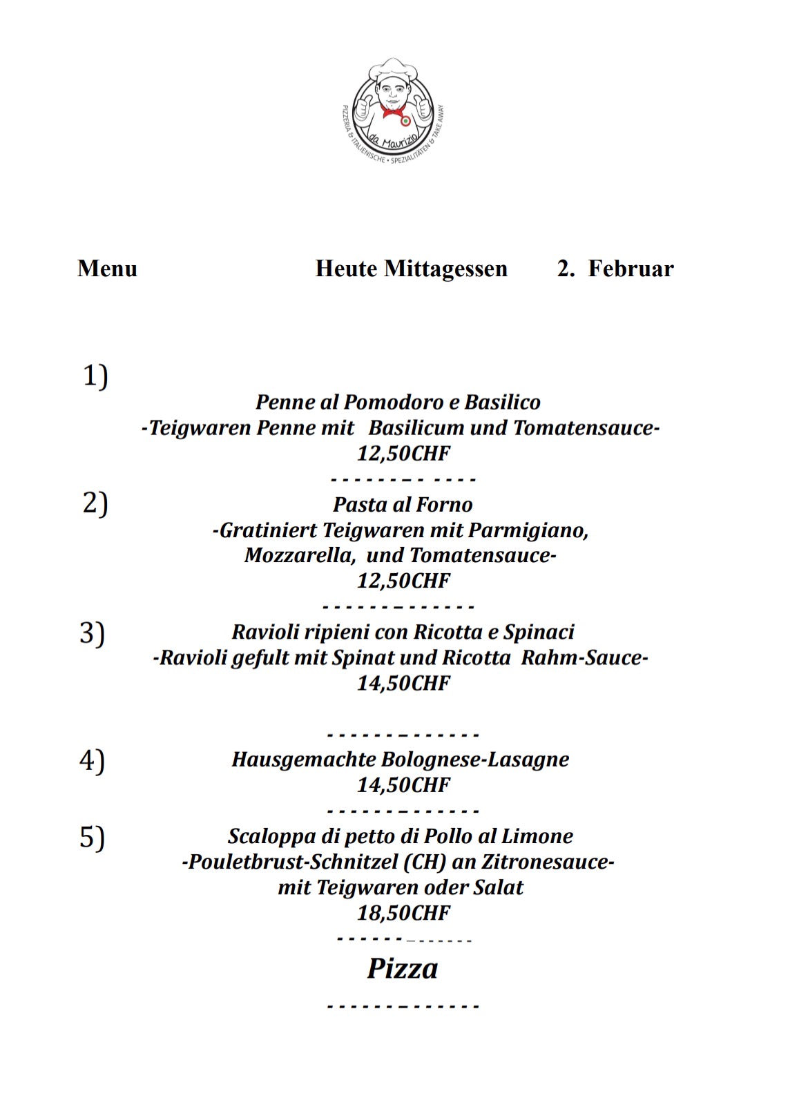Jedes Mal ein anderes Menü. Besuchen Sie uns jeden Tag, um herauszufinden, was Sie zum Mittagessen essen werden!