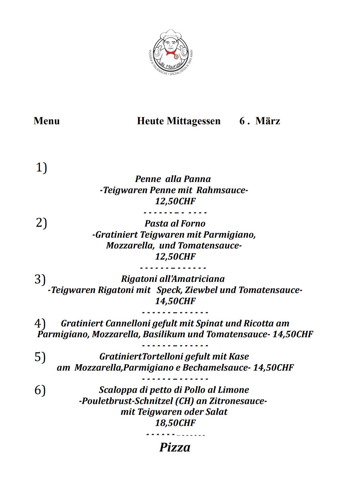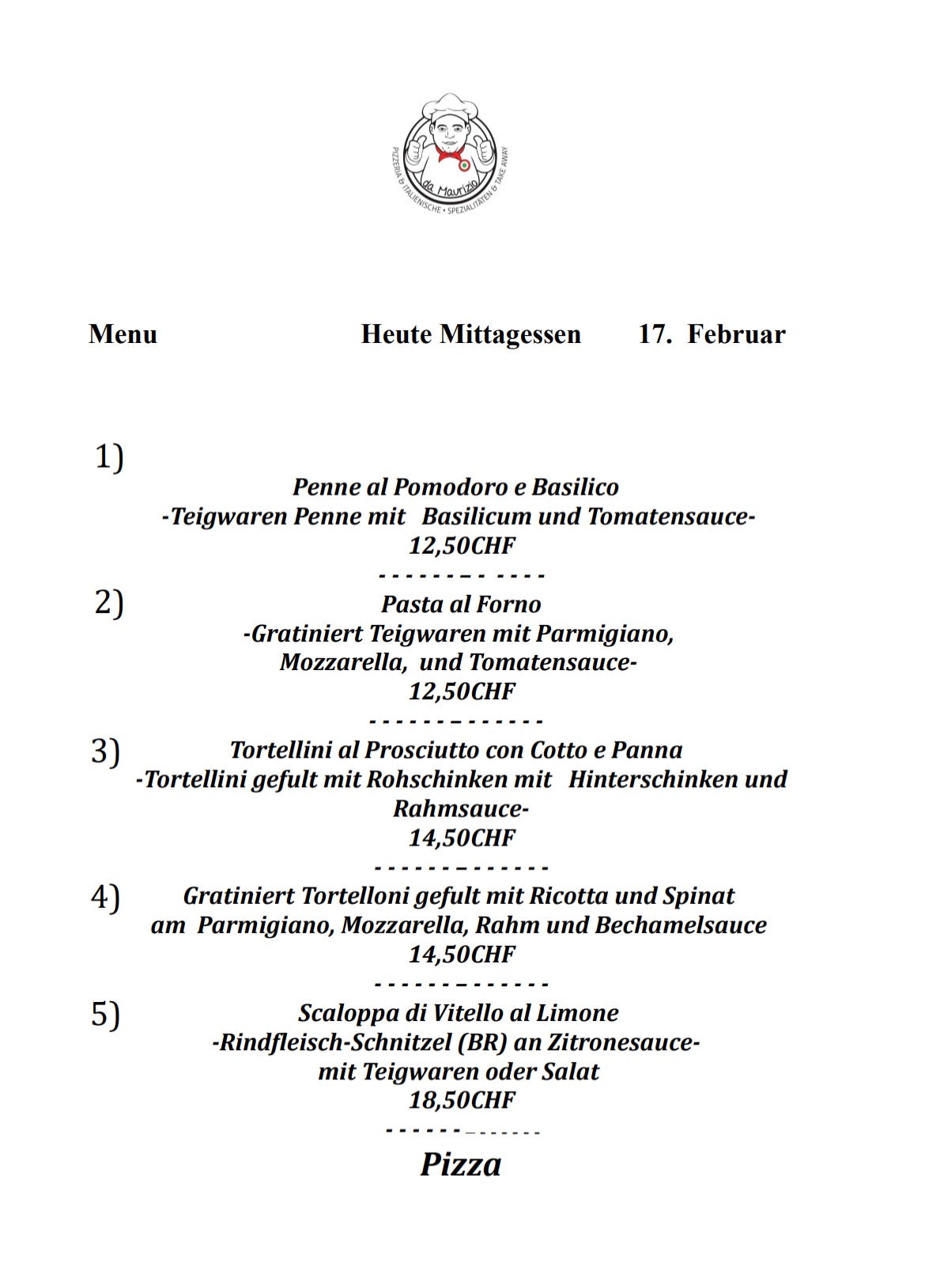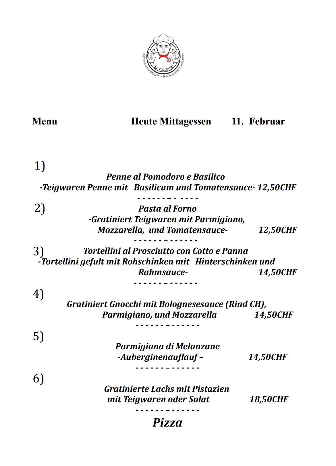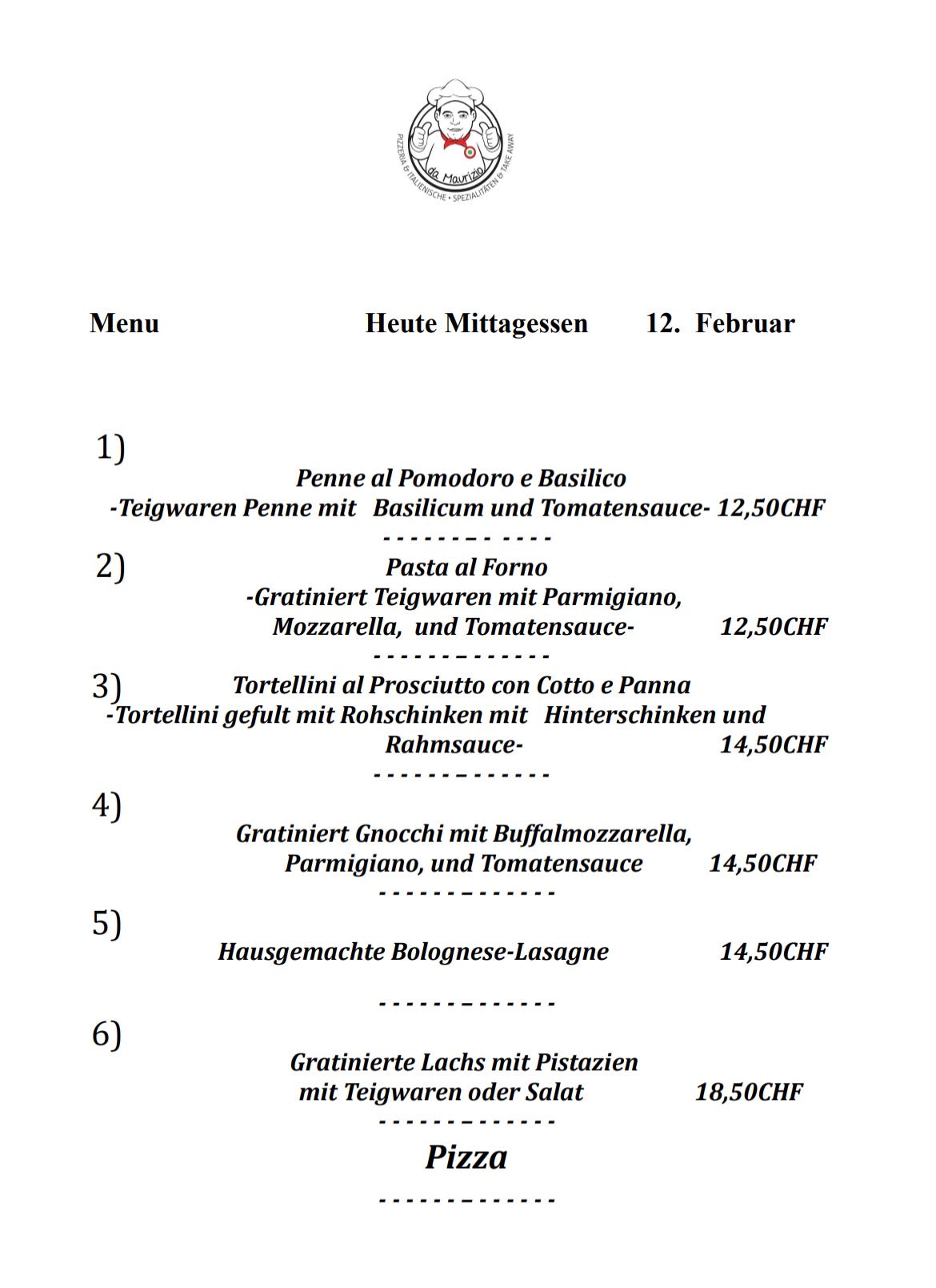 Jedes Mal ein anderes Menü. Besuchen Sie uns jeden Tag, um herauszufinden, was Sie zum Mittagessen essen werden!